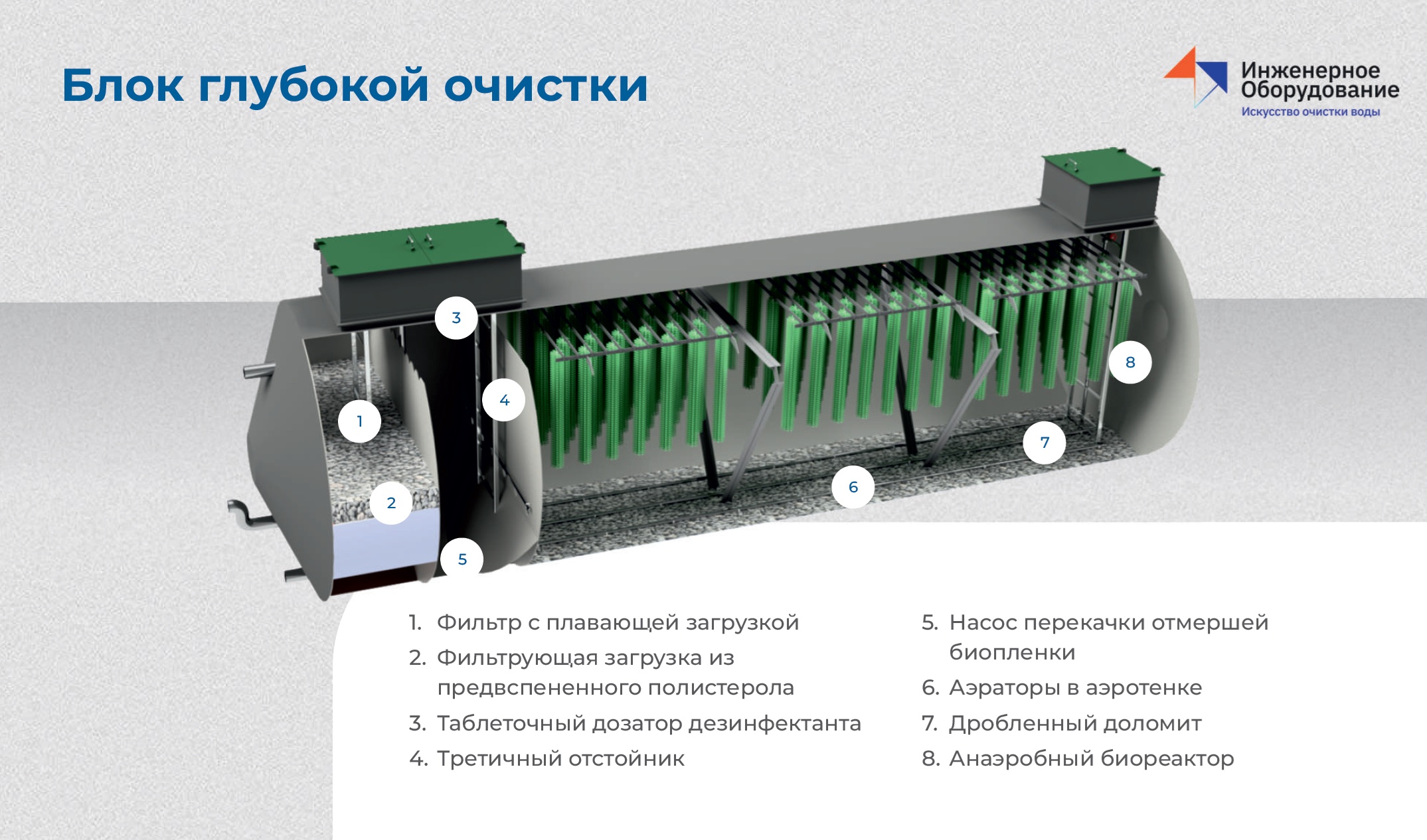 • ГЛУБОКАЯ многоступенчатая БИОЛОГИЧЕСКАЯ ОЧИСТКА с использованием иммобилизующей загрузки.